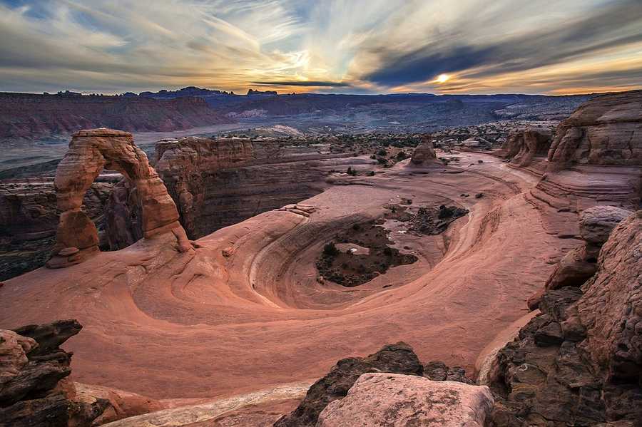 Arches National Park in south eastern Utah contains over 2,000 natural rock arches. The widest, known as Landscape Arch, extends 306 feet from one base to the other.